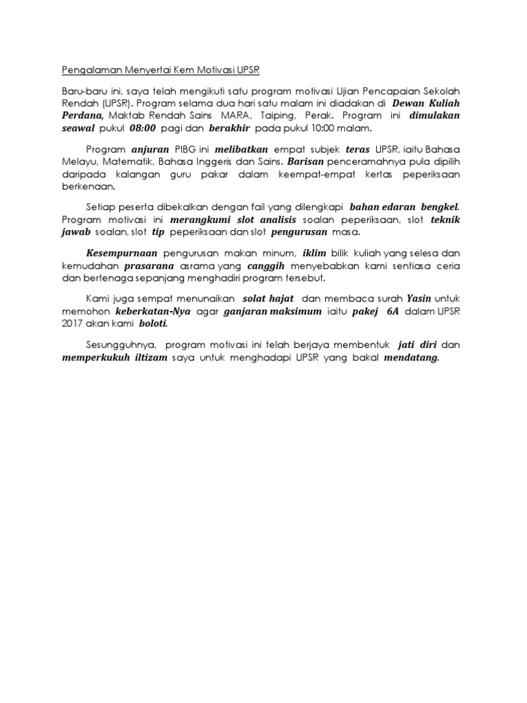 Pengalaman Menyertai Kem Motivasi Upsr Contoh Karangan Pdf